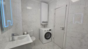 prysznicem oraz tarasu z przyjemnym widokiem na zieloną część kompleksu. Apartament jest w pełni
